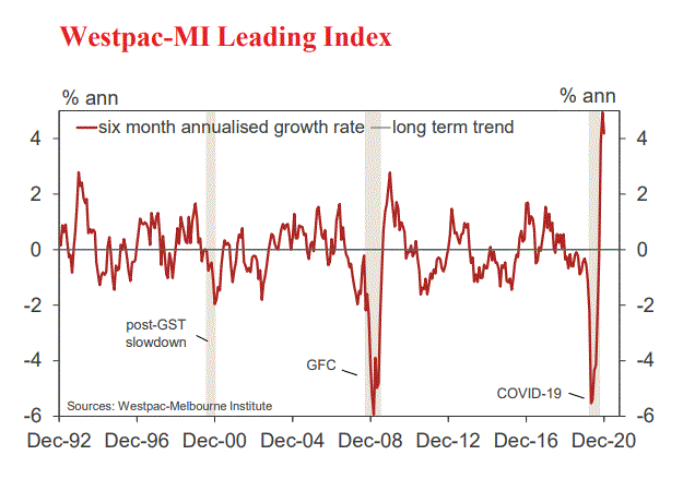 First up, let’s take a look at Westpac’s Leading Index. This pulls a whole bunch of things together – confidence, employment intentions etc.
