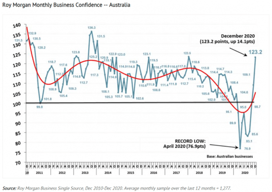 Now just to cross-check, this doesn’t come from a bank – it comes from a Roy Morgan survey, but it is also showing that Business Confidence in Australia is very solid.