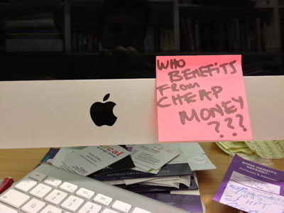 P.P.S. Here's that question again… Who stands to benefit if money is cheap? Did you put it on a Post-It note? I did. Here's photo evidence.