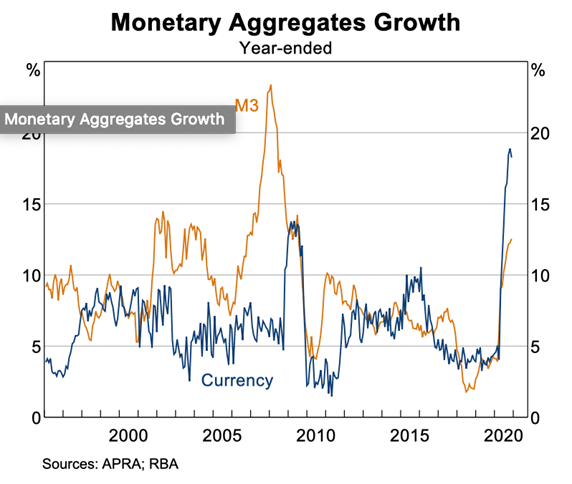 And in case you forgot, this chart shows us the pace of money growth speeding up, all thanks to the RBA’s printing press: